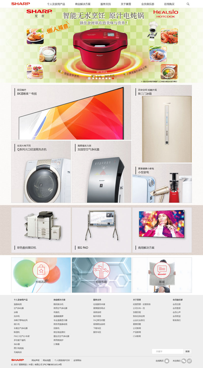 2004年12月,中國根據2001年12月加入WTO時的協定,對商業領域引進外資實行了對外開放,中國的經濟導向從出口主導轉向了擴大內需。受此推動,夏普于2005年設立了面向中國國內銷售的夏普商貿(中國)有限公司(SESC)。此外,為了響應中國政府倡導的建設“創新型社會”政策,于2010年底至2011年初,在上海、南京兩地又設立了研發中心。而為了承擔快速擴大的中國事業的總部職能,又于2011年10月在北京設立了地區總部夏普(中國)投資有限公司(SCIC)。 現在,夏普在中國已擁有1家地區總部、6家生產基地、5家銷售公司、2家研發中心,2010年包括出口在內中國總事業規模達到約700億元,正式員工約9千人。對于夏普來說,在中國的事業已經占據了非常重要的地位。